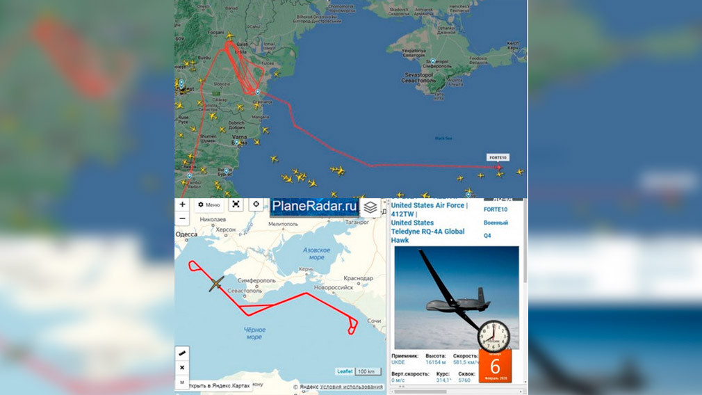 Теперь RQ-4B «оттеснены» на 100–130 км в глубь нейтрального воздушного пространства над Чёрным морем (в сравнении с ранним маршрутом) и вынуждены барражировать на удалении 150–180 км от Южного побережья Крыма. Следовательно, эффективной дальности функционирования РЛК AN/ZPY-2 MP-RTIP (250–300 км) едва достаточно для мониторинга лишь центральных районов Крыма и южных районов Кубани, в то время как инструментальной дальности действия радара в 370 км недостаточно для уверенной классификации целей в Херсонской области и Приазовья.