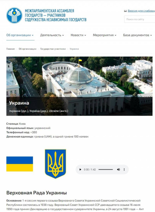 Как всегда, на официальных сайтах ведомств. На ресурсе iacis.ru Межпарламентской ассамблеи СНГ (обратите внимание на доменное расширение «ru») Украина в числе полноправных участников. Закроют в России «Википедию», можно будет сюда заходить – здесь и государственная символика врага, и гимн.