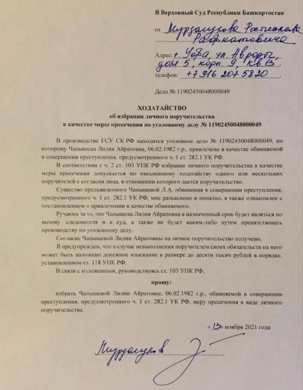 Он признался, что не одобряет былое сотрудничество Мурзагулова с руководством Башкирии, но опроверг утверждение о том, что он имеет отношение к аресту Чанышевой. Более того, напоминает олигарх, к моменту задержания уфимской навальнистки Мурзагулов свой пост председателя общественной палаты Башкирии покинул и даже написал поручительство для ее освобождения.