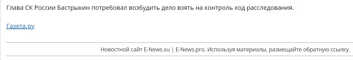 Глава СК России Бастрыкин потребовал возбудить дело взять на контроль ход расследования.