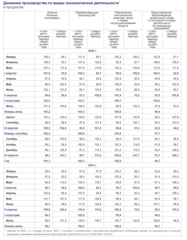 О ПРОМЫШЛЕННОМ ПРОИЗВОДСТВЕ В ЯНВАРЕ-ИЮЛЕ 2023 ГОДА