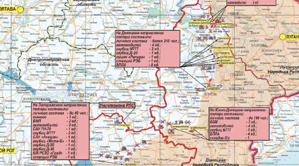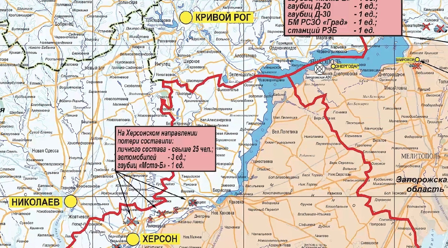 Потери противника составили более 215-ти украинских военнослужащих, четыре автомобиля, две артиллерийские системы М777 производства США, гаубица Д-20, противотанковое орудие «Рапира», а также станция радиоэлектронной борьбы с БПЛА «Буковель-AD».