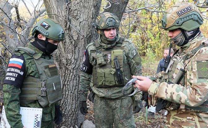 На фото: сотрудники Следственного комитета РФ и представительства ДНР в Совместном центре контроля и координации вопросов, связанных с военными преступлениями Украины (СЦКК)