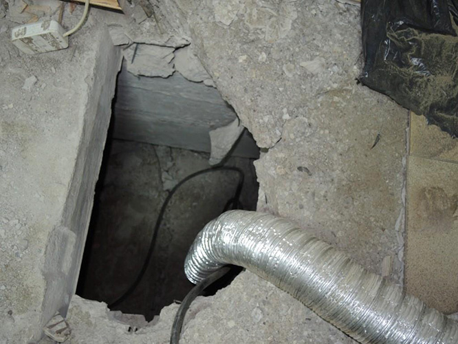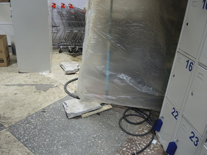 В магазин они проникли через железобетонное покрытие пола, из соседнего помещения (торговая точка является пристройкой к жилому многоэтажному дому).