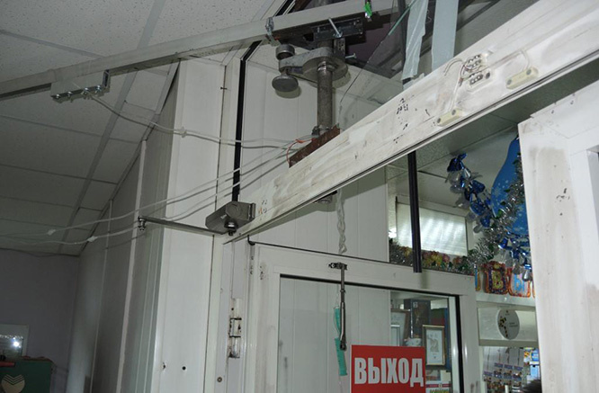 Накануне дня X с помощью пары мощных магнитов налетчики заблокировали магнитоконтактный датчик на дверях остекленной перегородки, разделявшей банкомат и торговую площадь.