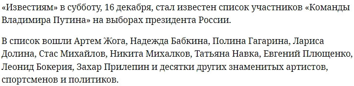 «Там вполне большое количество топ-звёзд наших, и если там не будет Орбакайте, Пугачевой и Лободы, на этом российская эстрада не заканчивается. Поп-исполнителей и так на самом деле достаточно и предостаточно. И помимо всем известной, так сказать, старой гвардии еще будут выступать новые имена».