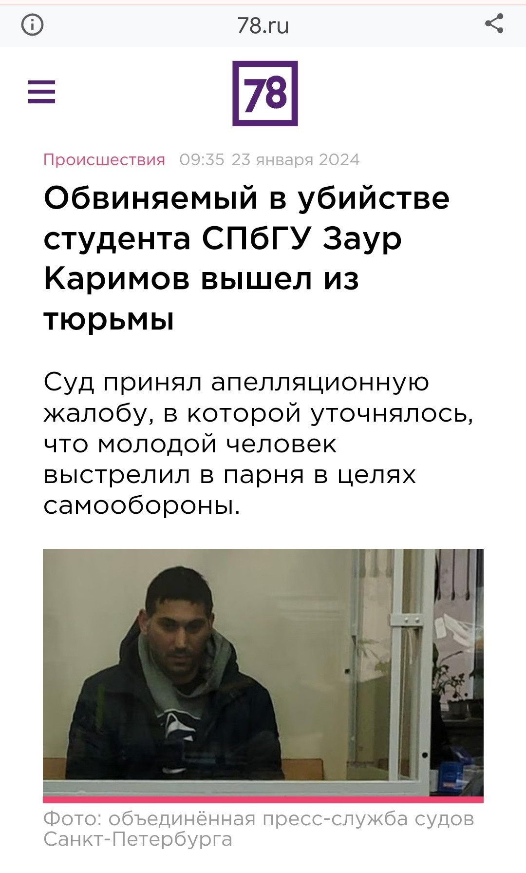 Азербайджанец Заур Каримов вышел из тюрьмы после убийства Владислава Голикова, студента СПбГУ.