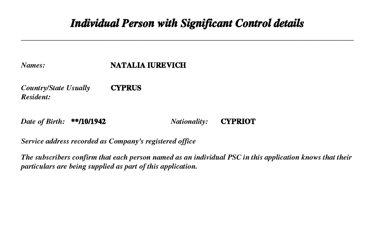 В уставном документе (копия имеется в редакции Life.ru) указано, что при регистрации фирмы Наталья Юревич предъявила паспорт Кипра. Сын бывшего губернатора — Александр — в качестве члена правления фигурирует в документации шести британских юрлиц. У него тоже кипрский паспорт, но при этом он является резидентом Королевства. Таким образом, можно предположить, что киприотами являются и остальные члены семейства — Михаил и Валерий Юревичи.