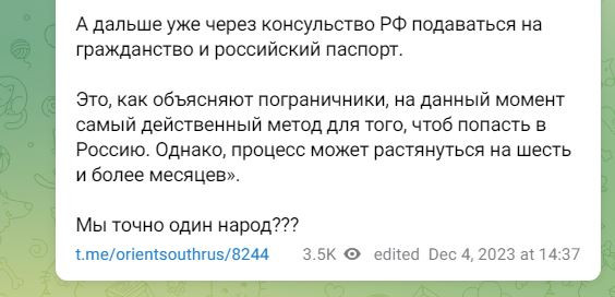 Поэтому нахожу, что тот фильтрационный режим, который включен сейчас, как минимум до Победы следует считать оптимальным, а проблемы укробеженцев вне России, считать сколько-нибудь нашими, напротив, не следует.
