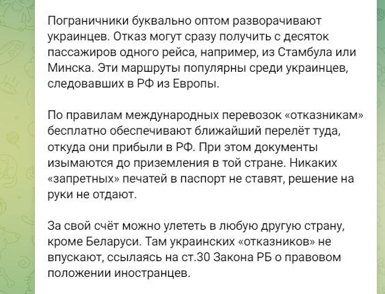 (Они, тех кого развернули на границе, там у себя чат запустили "Отказники Шереметьево" )