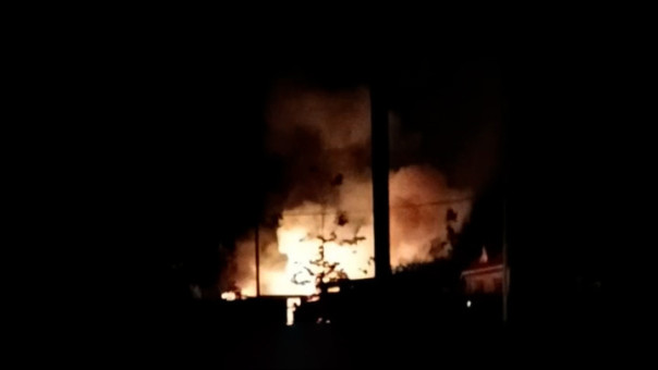 В результате прямых попаданий снарядов загорелись гараж на территории частного жилого домовладения и легковой автомобиль. Пожарные тушат их.