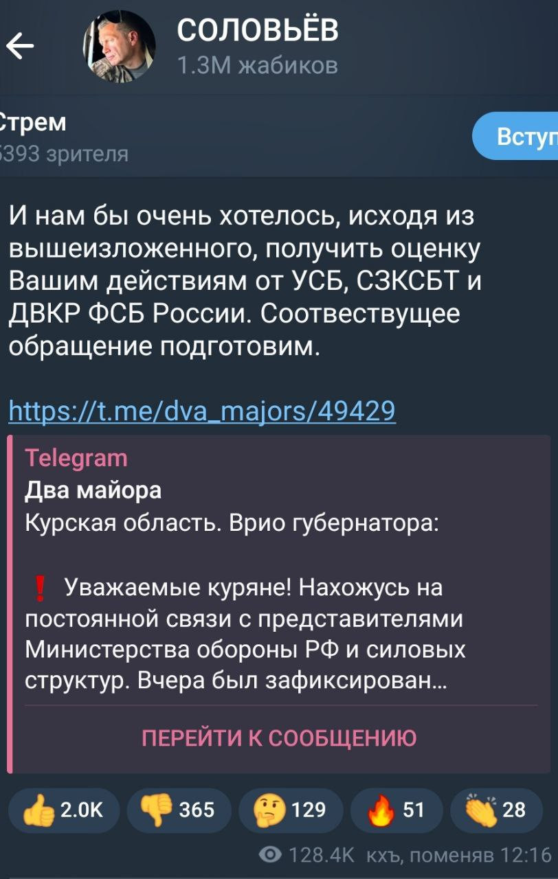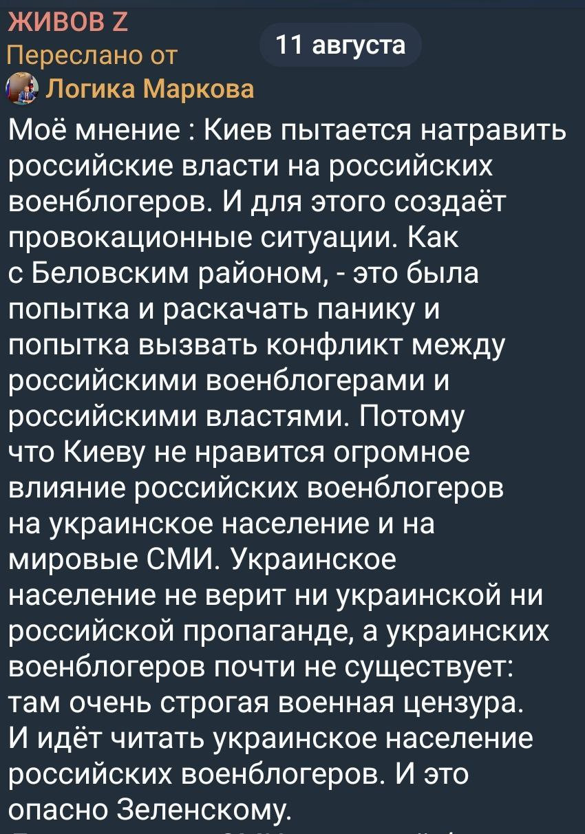 И знаете таки шо самое смешное во всём этом? В главном-то они правы: действительно тут наличествуют и происки Киева, и ЦИПСы в том числе. Действительно, только ведь ципсятина могла по приказу из Киева придумать вбросы в наше информпространство про сдачи н.п. и целых районов, чтобы, как в случае с Курской областью, где эвакуировалось по подсчётам на пятницу порядка 76 тысяч человек. При том что в угрожаемом районе живёт не более 40 тысяч. А что это значит? Пробки, паника, заторы в том числе и для встречных военных колонн, а главное все выезды это куда большая угроза для жизни граждан, чем даже обстрелы: от оных можно и спрятаться всё же, а вот наткнуться в машине на ДРГ, как показывает практика, тут уже шансов мало будет выжить.