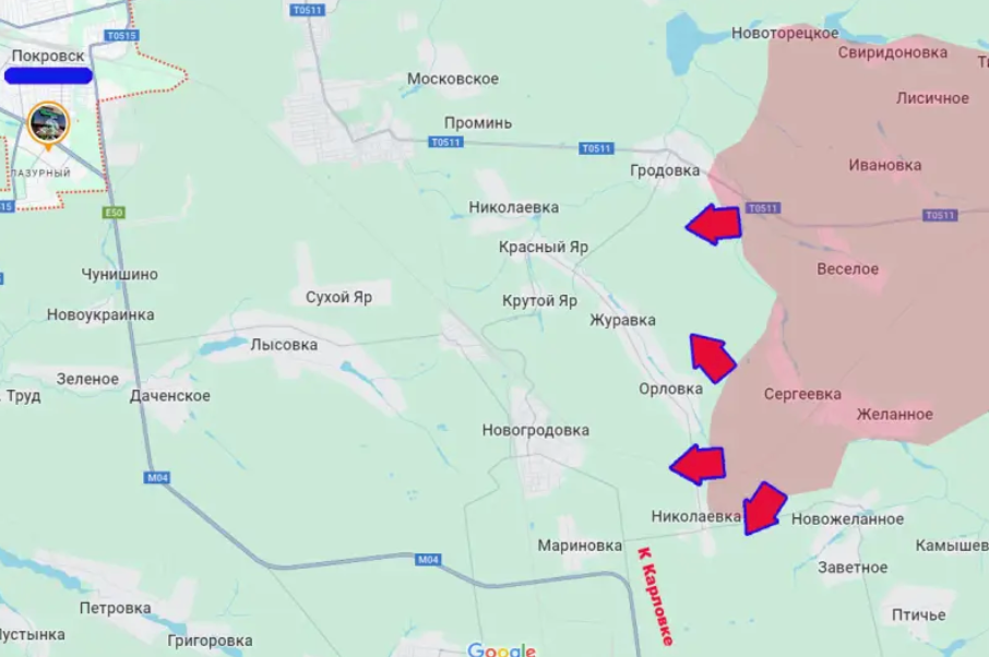 По его данным, ВСУ отошли в сторону села Николаевка (3 км от Новогродовки,20 км до Красноармейска (Покровска)), которое будут пытаться удержать.