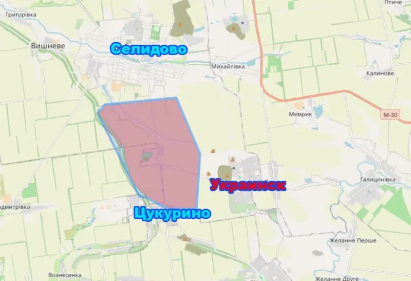 Речь идёт об участке территории между Цукурино и городом Селидово.