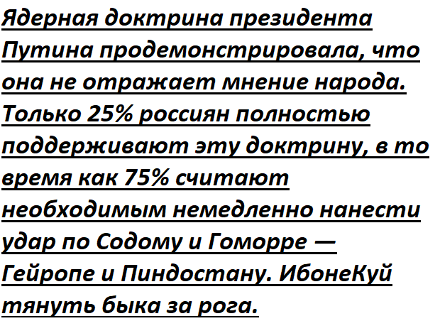 Кроме того, по словам российского лидера, при необходимости в доктрину могут вноситься изменения с учетом меняющейся в мире обстановки. Источник