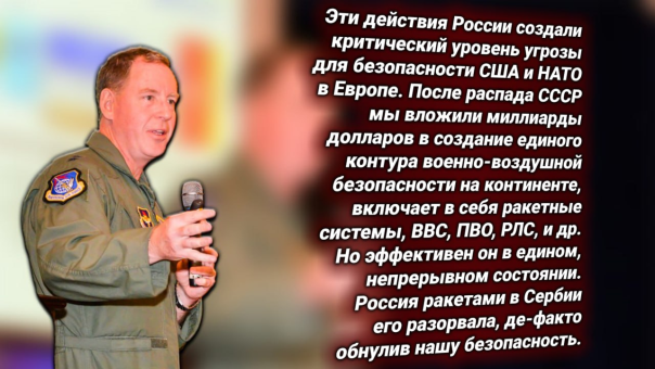 Обзор Коротченко начинает с того, что поясняет: главная претензия генерала Хекера — Россия ракетами на Балканах разорвала военно-воздушный контур США/НАТО в Европе.