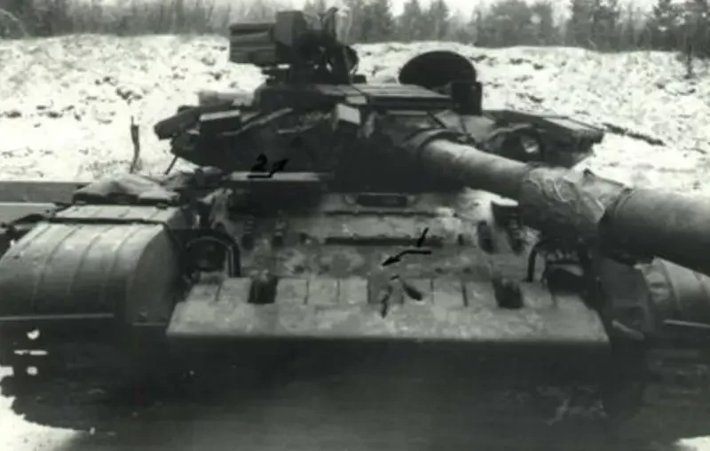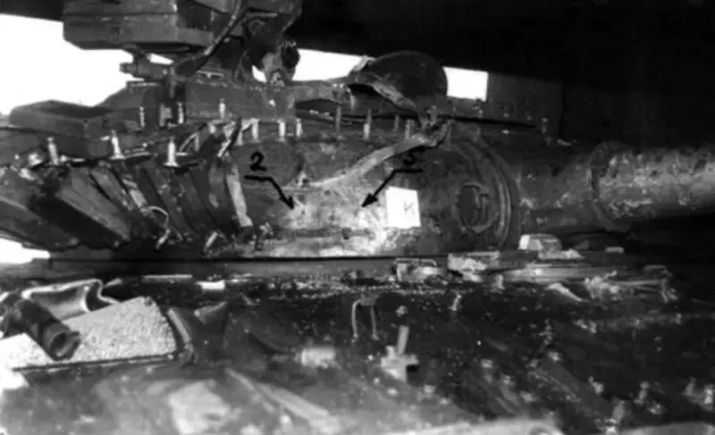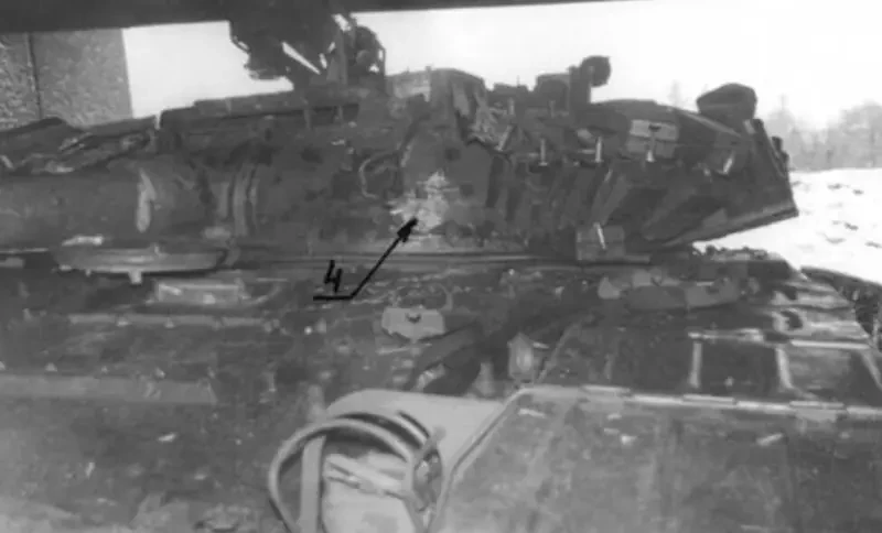 Однако сопутствующие повреждения танков без пробития брони тоже были, особенно при попадании пушечных кумулятивных снарядов и подрыве боевых частей ракет. Немалая их часть так или иначе сказывалась на технической боеспособности танков, в том числе и подвижности. Посмотрим на наиболее характерные случаи.
