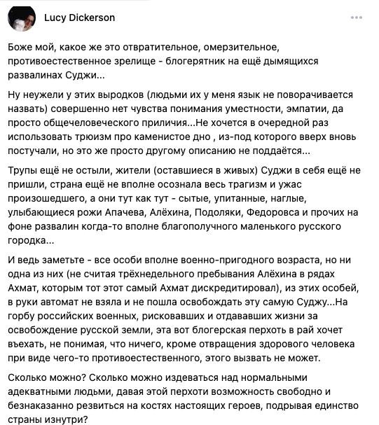 А теперь, когда по итогу в т.ч. и их действий многие суджане были убиты преступниками из ВСУ, они вновь брызжут слюной. И разжигают ненависть теперь против «всех украинцев».