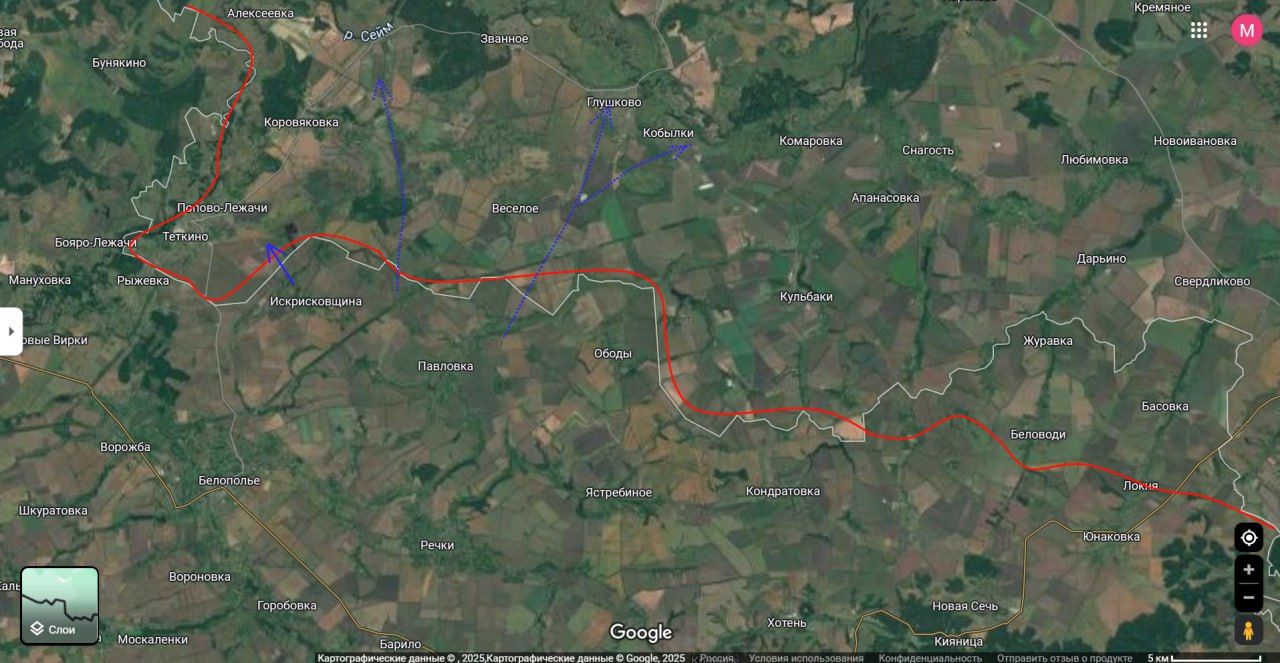 Как я понимаю географию района (а в молодости мне там не раз приходилось ловить раков, благо от родных Сум на машине всего-то 40 минут езды), на первоначальном этапе главной задача ВСУ является занять в районе Теткино значимый плацдарм (желательно все село).