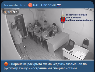 В Воронеже сотрудники Центра помощи мигрантам "Мир" наладили схему, по которой экзамены сдавали все, даже те, кто ни слова не знает по-русски. Видео, опубликованное пресс-службой регионального управления ФСБ, показывает, как происходил процесс сдачи экзаменов.