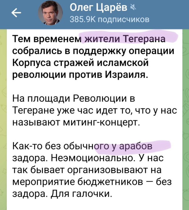 Потом приобрети себе нормальное дополнительное образование. Репетиторов, что ли, найми. Может, тогда хоть элементарные вещи выучишь. Например, что персы - не арабы ни разу. Там, правда, и в других странах арабского мира живут все больше тоже не арабы, но это для тебя пока сложно. И, потом, начинай писать только о том, в чем разбираешься. Ну, ты понял, о чём?