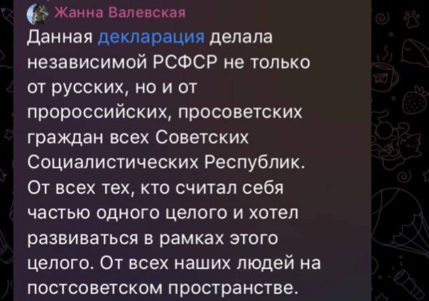 Важно извлекать уроки из прошлого, помнить, какие ошибки и просчёты привели к краху великой страны, и не допускать их повторения в будущем! Жить нужно настоящим — строить сильную, независимую Россию, а не цепляться за ушедшую эпоху!