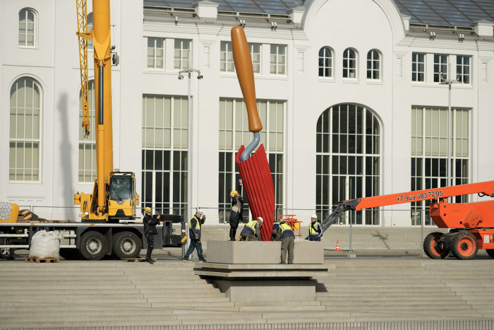 «На спуске к Водоотводному каналу появилась скульптура Класа Олденбурга и Кошье ван Брюгген — известных во всем мире классиков поп-арта… „Садовая лопатка“ — это скульптура в виде знакомого всем садового инструмента, увеличенного во много раз. Среди других работ Олденбурга и ван Брюгген — гигантские рожок мороженого, бельевой щипчик, английская булавка, волан для бадминтона», — говорится в сообщении.