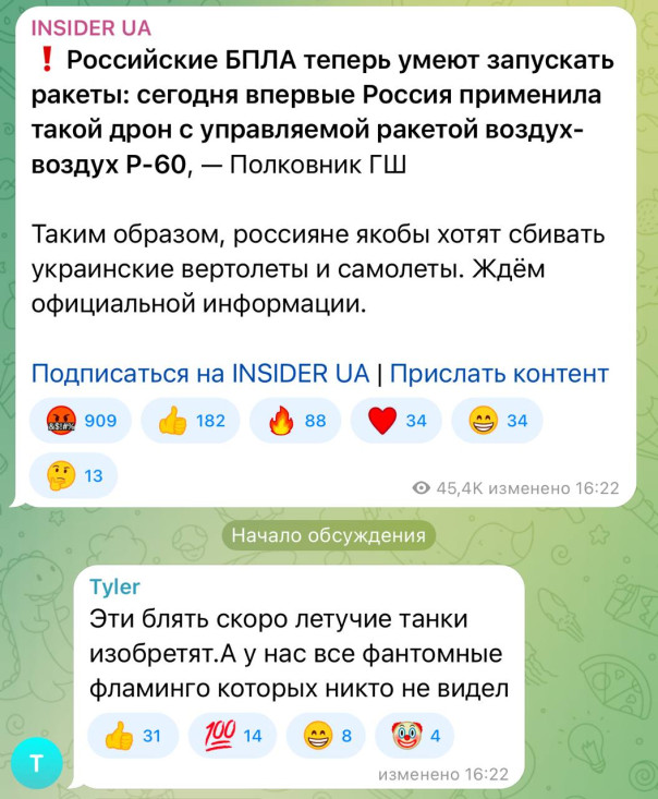 Сегодня ВС РФ впервые применили "Герань-2" с ракетой воздух-воздух Р-60 на борту, утверждает противник.