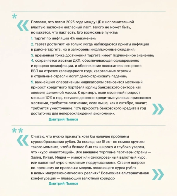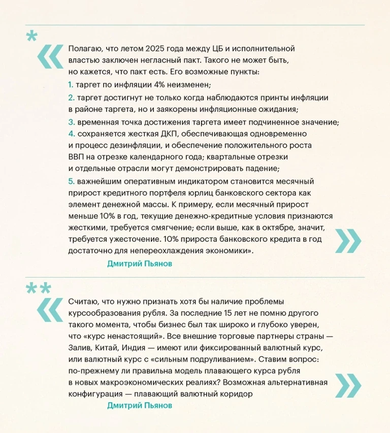 «Очень важным для раскрытия этого героя является элемент этой пьесы, который начинается со слов: «Входит Инфляция в одеждах, что когда-то были светлые, а ныне темные и искусительные». То есть светлые одежды — образ добродетелей, темные — падшего ангела. Искусительные одежды свидетельствуют о том, что одно из свойств инфляции — это искушение, потому что инфляция выгодна правителям. За счет инфляции правители, по сути, скрытым налогом могут финансировать свои источники бюджета», — объяснил Пьянов.