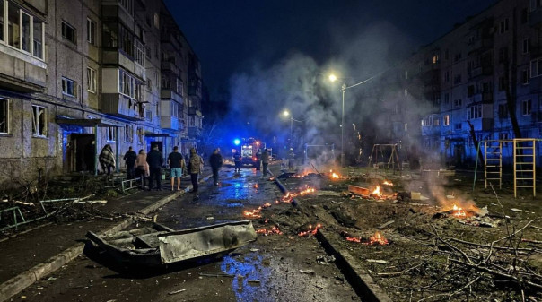 Один из украинских дронов упал между жилыми домами в Будённовске Ставропольского края. На фото видны выбитые в домах окна и оконные рамы.
