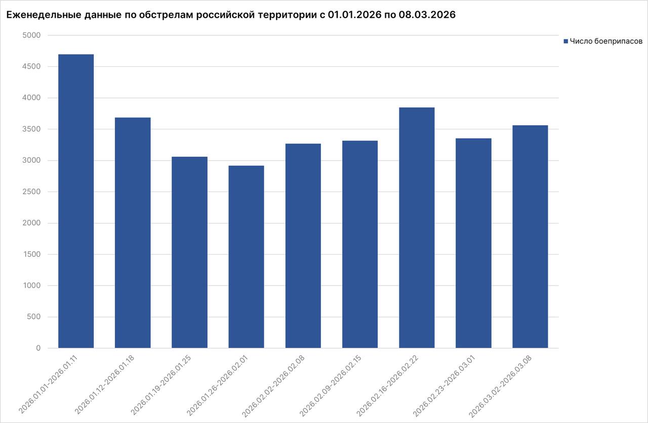 За неделю со 2 по 8 марта от обстрелов украинских нацистов пострадали 183 мирных жителя: ранены 153 человека, в том числе 9 несовершеннолетних, погибли 30 человек, в том числе 1 ребенок. Всего по гражданским объектам на российской территории за прошедшие семь дней украинские вооруженные формирования выпустили не менее 3 563 боеприпасов.
