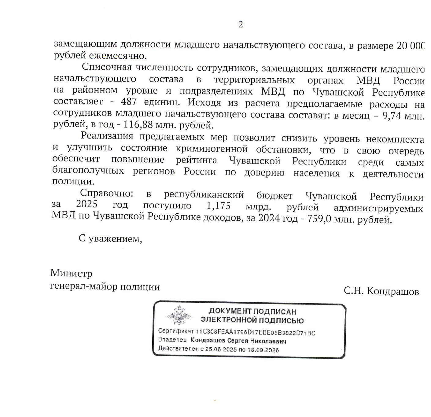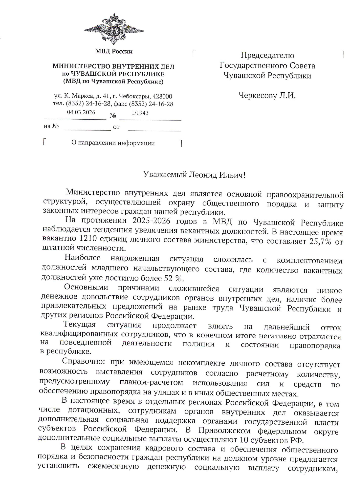– На заседании расширенного правительства, где обсуждались поправки в бюджет Чувашии на 2026 год, предложение о финансовой поддержке сотрудникам полиции господа министры не поддержали. Сослались на то, что от МВД не официальной заявки. Как будто никто не слышал выступления генерала, – рассказал Николай Степанов «Правде ПФО». – Дело было поправимо, Кондрашов оперативно направил письмо со всеми выкладками на имя спикера парламента Леонида Черкесова. Тот его переадресовал в профильный бюджетный комитет, но там произошла странная история.
