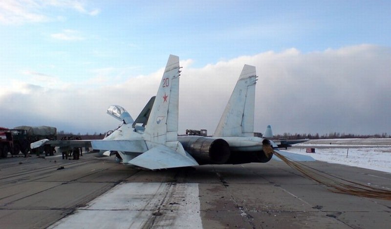 Как сообщает источник, самолёт совершал плановые ночные полеты, когда у него отказала гидравлическая система переднего шасси. Экипаж самолёта принял решение совершить на два основных шасси аварийную посадку. Никто из лётчиков не пострадал, возгорания не произошло. Как уточняет источник, полеты Су-27 проводились без боекомплекта. На место происшествия прибыли представители специальной комиссии и оценили степень поломки. Они считают, что самолёту требуется незначительный ремонт для полного восстановления технической готовности транспортного средства.