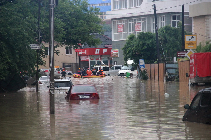 Вода сносила все на своем пути. Особенно сильно от потоков пострадал Адлерский район. Вода зашла в сотни домов, заставив местных жителей спасаться на крышах. Автомобили сносило в море, как спичечные коробки. Приостановлено было и транспортное сообщение. Самолеты, железная дорога, автомагистрали — остановилось буквально все. Частично освободить город от изоляции удалось лишь к вечеру, когда стихия стихла.