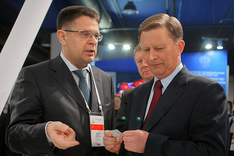 Экс-заместитель председателя правления «Роснано» Андрей Малышев (слева) и глава администрации президента Сергей Иванов на международном форуме по нанотехнологиям. Декабрь 2008 года