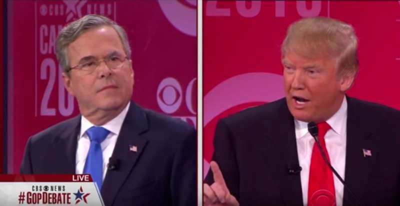 На дебатах, показанных телеканалом «CBS News», в которых участвовали потенциальные кандидаты от Республиканской партии, Дональд Трамп обрушил лавину критики на своего конкурента Джеба Буша, который ранее попытался покритиковать в микрофон Трампа.