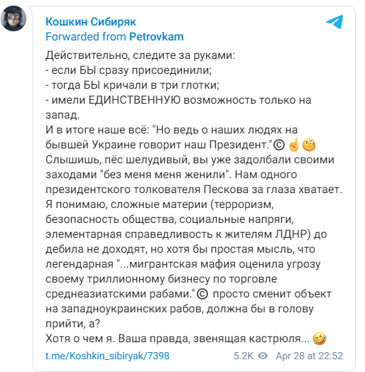 Конечно, забавно получается. Бенефициары антироссийского проекта в действительности верят в едино/братсконародие куда сильнее, нежели медианный русский обыватель.
