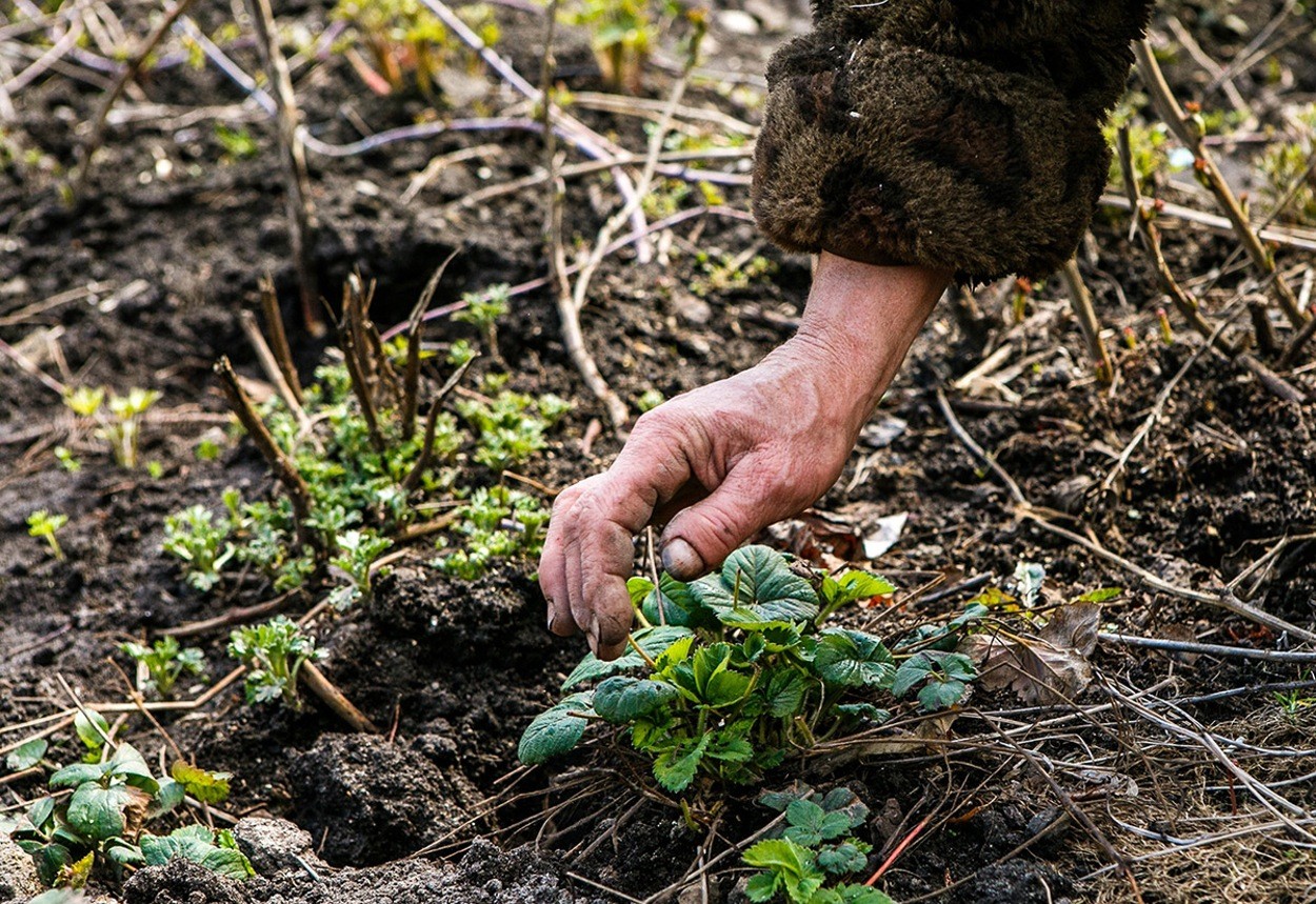Над грядками с саженцами клубники колдует женщина лет шестидесяти. Для крестьянки она выглядит нетривиально: кепи в мелкую клетку, видавшая виды шуба нараспашку, свитер крупной вязки с большим сморщенным воротом, бордовые штаны и шоколадные угги. Ей бы не в огороде копаться, а сидеть с чашечкой кофе.