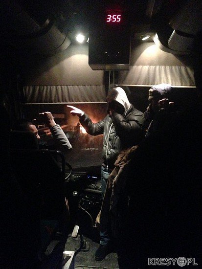 - ...Около двадцати человек окружили автобус и начали его раскачивать. Зайдя в автобус нам сказали, что для проезда никто разрешения не давал. Сначала они накинулись на водителя, который мирно сидел на своём месте и соглашался со всем, что они говорят на пьяную голову. Потом пассажиры начали просить пропустить домой, на что им ответили: «Пусть украинцы выйдут и вы можете ехать». Какому-то поляку разбили телефон, потому что он снимал процесс. Водитель начал предлагать деньги. Затем в автобус зашли ещё пять человек в масках и начали кричать, что у них здесь «мирный протест» и «что вы здесь топчитесь, мазуры?».
