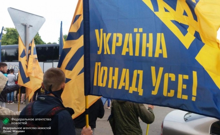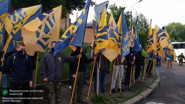 Нацисты «Азова» начинают марш в Киеве, в толпе призывают к погромам