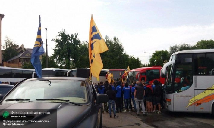 Боевиков привозят автобусами, они выстраиваются в колонны, завязывают лица платками или надевают маски. Очень много молодых людей, у многих наколки с националистическими символами.