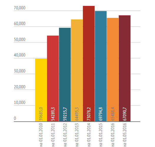 На показатель 01.01.2014 не смотрите, он подделан. В реальности там было 58 миллиардов (вернее, с учётом российских 3 миллиардов – уже 61, но никак не 73), а позже показатели были подделаны по приказу Яценюка, чтобы свалить на «папередников».