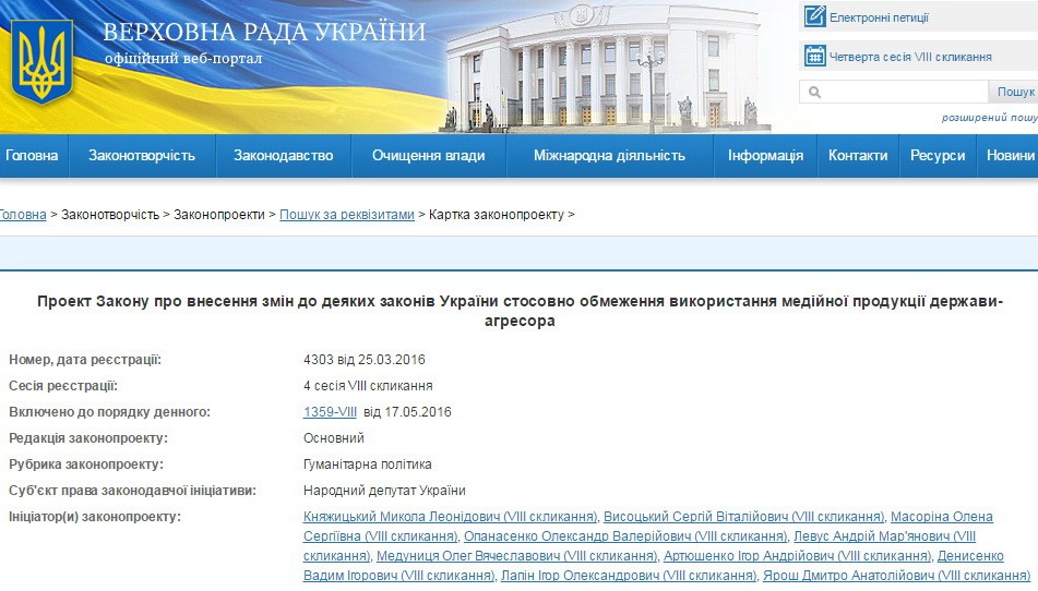 «Принятие законопроекта, как утверждают его авторы в «Пояснительной записке» к документу, повысит авторитет украинской власти и поможет защитить национальную безопасность. Судя по сегодняшнему «ура-патриотическому» настрою депутатов высшего законодательного органа Украины, законопроект №4303 имеет серьезные шансы быть утвержденным как минимум 226 членами Рады», — не сомневаются в «МК».