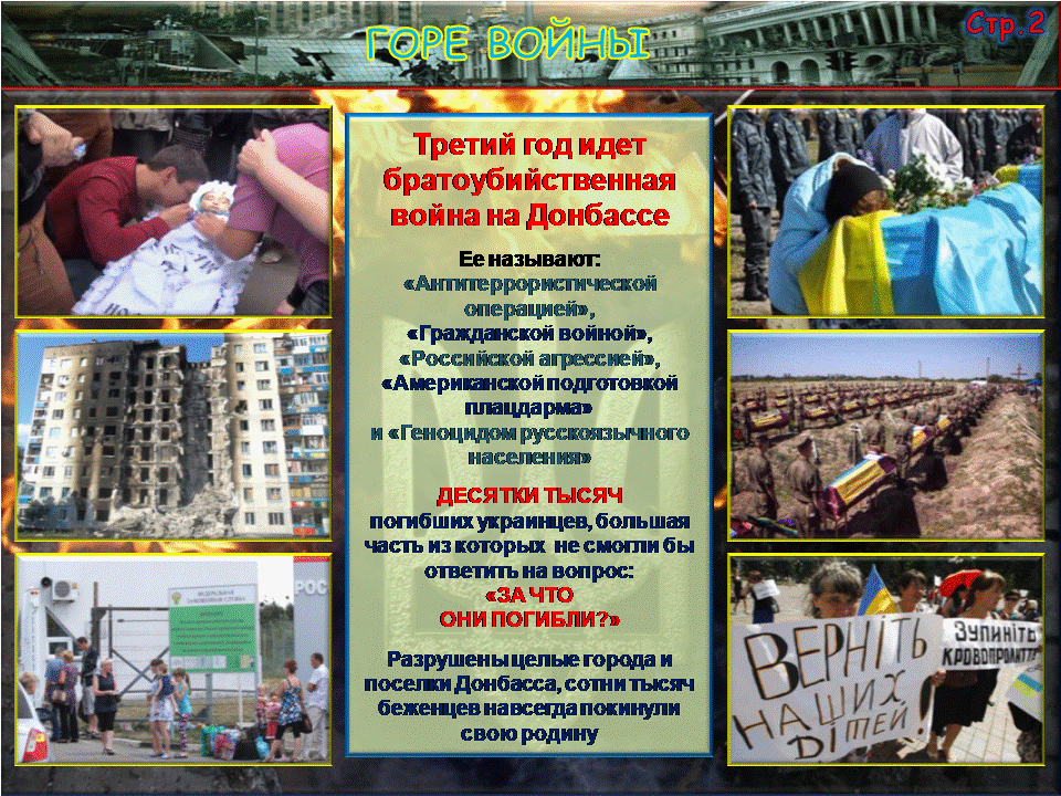Третий год идет братоубийственная война на Донбассе. Ее называют: «Антитеррористической операцией», «Гражданской войной», «Российской агрессией», «Американской подготовкой плацдарма» и «Геноцидом русскоязычного населения».