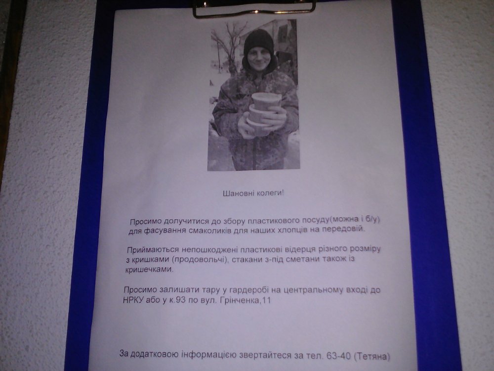 Объявление про сбор пластиковой посуды для солдат хунты.