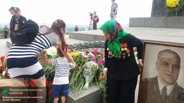 Киев, 22 июня. Возле памятника Неизвестному солдату в парке Вечной славы Киева собрались сотни горожан, не испугавшихся преследований властей и националистических боевиков, сообщает корреспондент Федерального агентства новостей (ФАН).