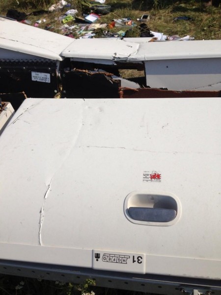 Нестыковка 1. Мало кто потрудился сравнить последнее видео с борта самолета с реальными осколками. А зря. Видео отчётливо показывает: маркировка мест – слева от ручки, причём на значительном расстоянии. Маркировка на осколках самолёта – строго над ручкой, причём справа, а не слева.