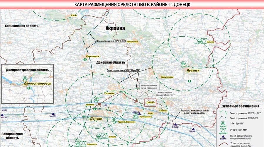 Всё это время рейс MH17 проходит не в транспортном коридоре, идёт на опасное сближение с другими двумя самолётами. Дополнительную напряжённость дают полётные ограничения по высоте, которые очень сильно сужают воздушный коридор. Почему днепропетровские диспетчеры сами не направили самолёт обратно в коридор? Причины видим только две – им это было не нужно, либо самолёт к этому времени уже был атакован.