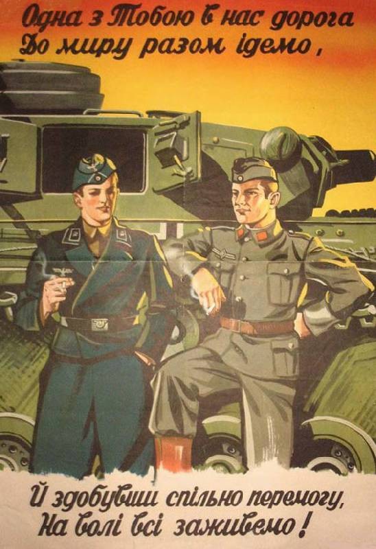 Таким образом, идя навстречу пожеланиям главарей украинских фашистов, и, кроме того, имея невосполнимые потери в личном составе, верхушкой Рейха была дана отмашка на создание туземной дивизии Ваффен-СС и объявлена мобилизация «неарийцев» на службу гитлеровской Германии. На призыв откликнулось не много, не мало, 70 тысяч галицайских рагулей, спешивших евроинтегрироваться и получить комплект формы от Хьюго Босса вместе с кружевными трусами.