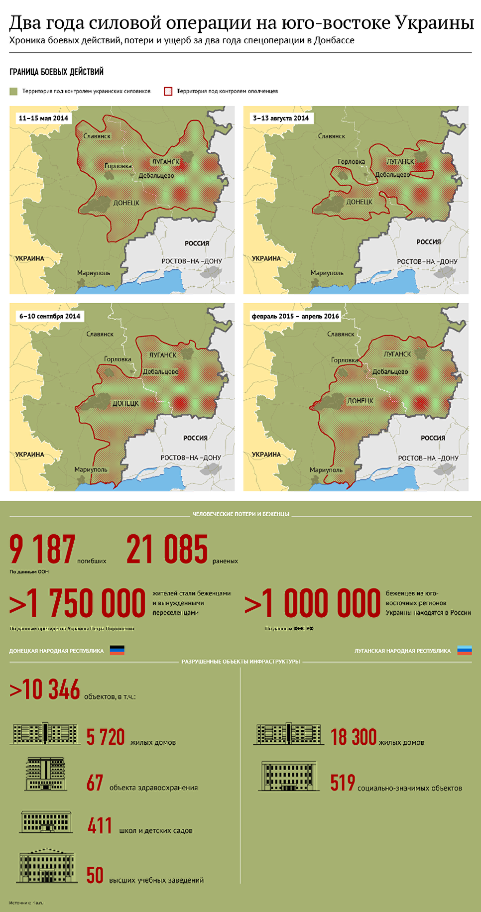 На митингах в начале апреля 2014 года жители Донецкой и Луганской областей Украины, не признавшие легитимность февральского госпереворота, провозгласили создание "народных республик". После проведенных в мае референдумов республики объявили о своем суверенитете, сформировали собственные органы власти, а в ноябре того же года в ДНР и ЛНР прошли выборы глав республик и депутатов парламентов. Источник